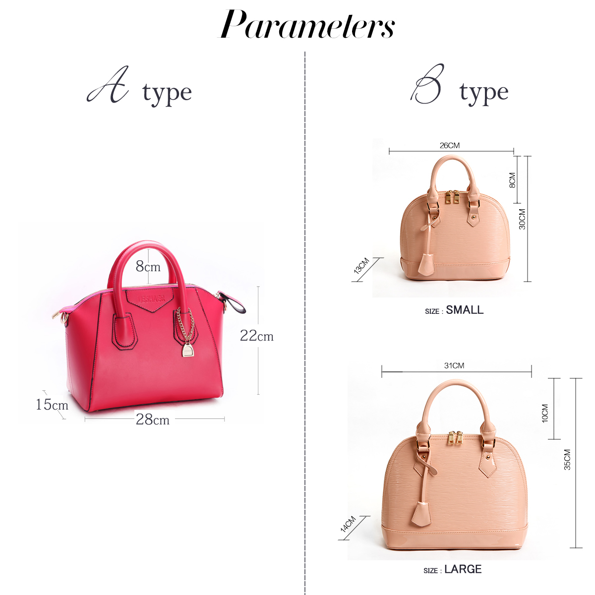 Aはやや四角いフォルムのバッグで