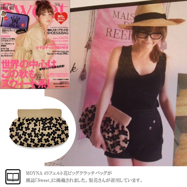 雑誌で梨花さんが使用しているモイナのクラッチバッグが
