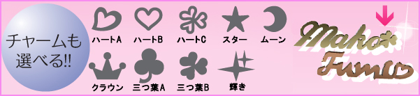 文字の間に付けられる、チャームを9種類から選べて