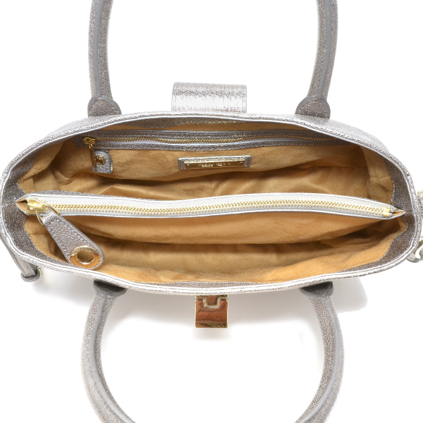 JIMMY CHOO(ジミーチュウ)クロコ調レザーが魅力的な2WAYハンドバッグ「ROSALIE」が入荷しました。正面の金具にはしっかりとロゴが刻まれています。マチがしっかりとあるので収納力も抜群!取り外し可能なショルダー付きでななめ掛けもOKです。 開閉:クリップ式 内側:ファスナーポケット×1 オープンポケット×1 取り外し可能ショルダーストラップ×1